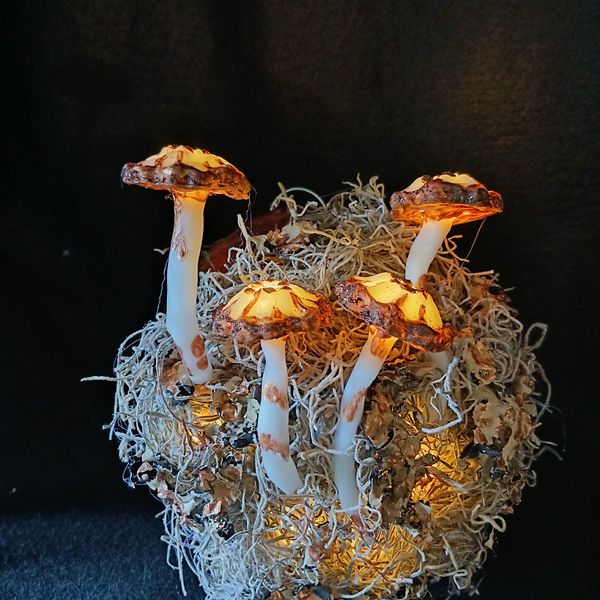 Each of our lighted hand-crafted mushrooms is a unique piece of art. Perfect for adding a touch of whimsy to your home decor or costume.